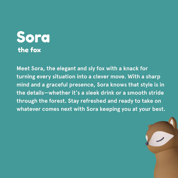 Meet your new Bestie — Sora the Fox! This playful designer water bottle makes every sip an adventure with its removable, collectible silicone character head full of personality. With advanced double-wall vacuum insulation, Sora keeps drinks cold for up to 24 hours or warm for 12 hours, perfect for school, outdoor adventures, or everyday fun. The handy 460ml size fits comfortably in bags and cup holders, and each bottle comes with a cleaning straw to make keeping your Bestie fresh and clean effortless.