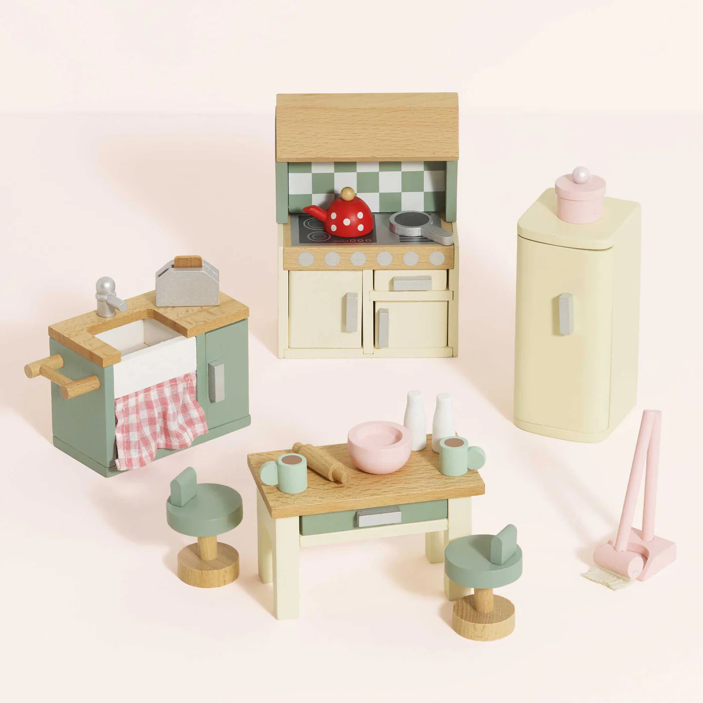 This stunning doll house kitchen furniture set features a lovely contemporary look to add instant style to any miniature dream home. Comprising 20 individual pieces, all crafted from FSC®-certified wood and perfectly scaled to fit the range of Le Toy Van's stunning dolls houses.