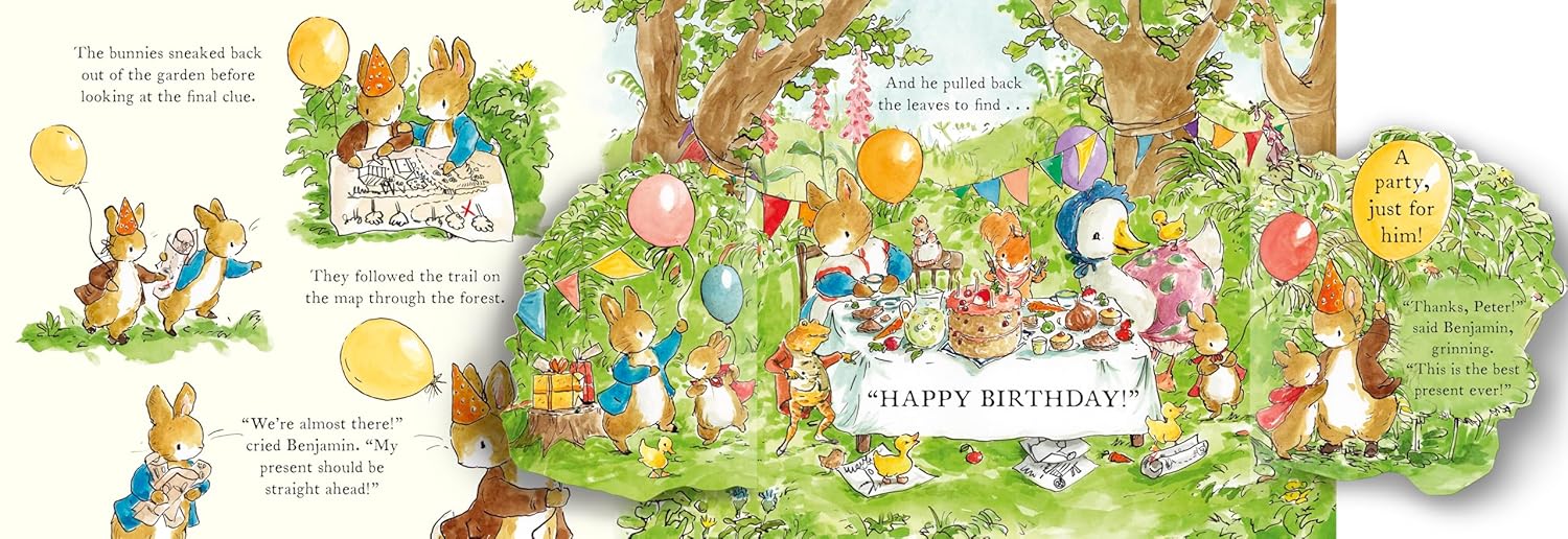 It’s Benjamin Bunny’s birthday and Peter has planned an extra special birthday surprise for his friend! Hop along with Benjamin and Peter to find all the clues hidden in the forest and discover the best birthday present a bunny can ask for!