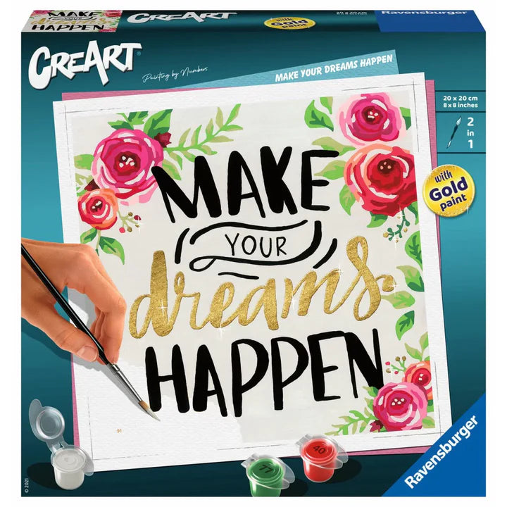 With the paint by numbers CreArt kit from Ravensburger, you can easily create a beautiful artwork and let your creativity shine. The Make Your Dreams Happen theme inspires you as you paint, making each session relaxing and motivating at the same time.