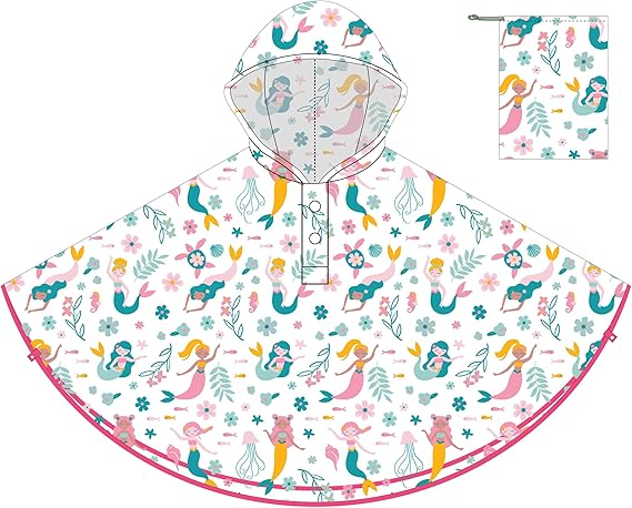 Rain or shine, your little adventurer stays cosy and dry in this lightweight mermaid themed poncho! Designed for active kids who won’t let a little drizzle slow them down, it’s easy to slip on over any outfit. The included carrying patch means it packs down small enough to toss in a backpack or stroller—perfect for unexpected weather. Splash-proof fun that keeps up with their energy!
