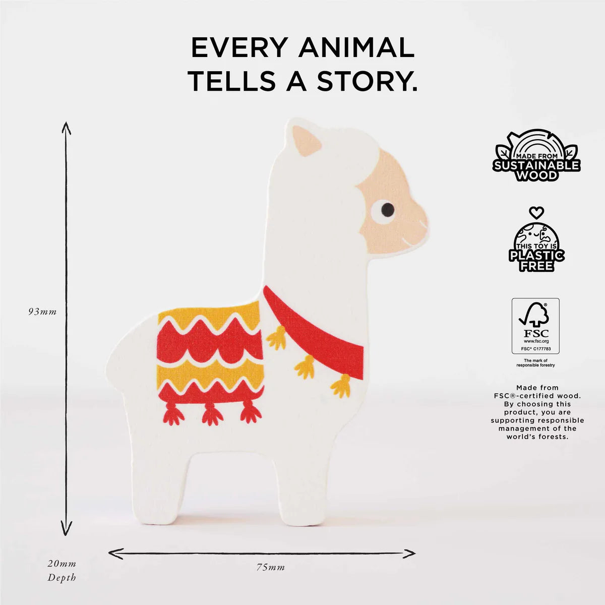- Dimensions: Alpaca – W:7.5 x D:2 x H:9.2cm / Bag – W:17 x H:22.5cm