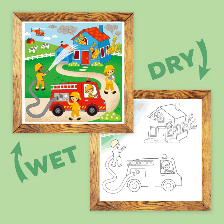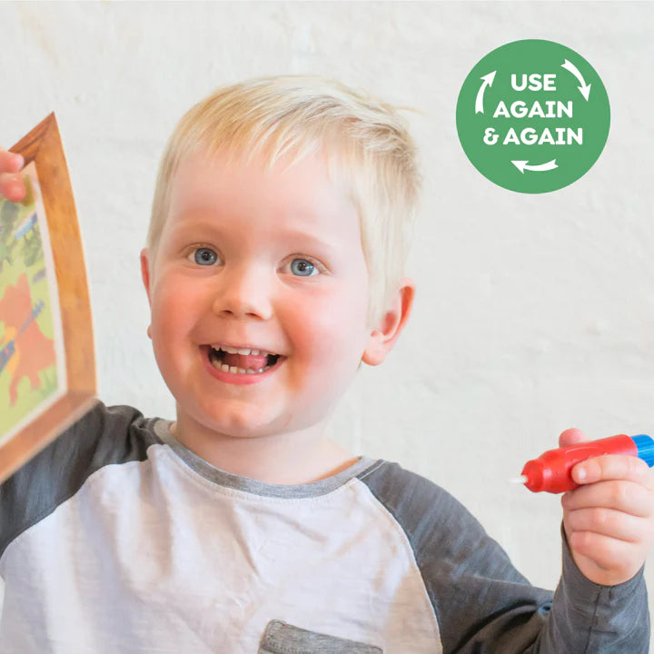 Ideal for portable play, each set contains 4 paintings for you to discover with your water-brush that can be revealed time and time again - when your scene dries, it returns to white, hiding your magic world so you can keep playing over and over again.