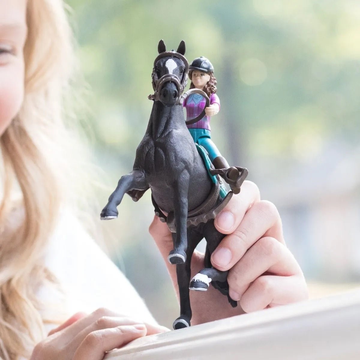 Lisa and Storm from the Schleich® Horse Club includes the fully movable Lisa figurine, her loyal Hanoverian gelding Storm, plus a bridle, saddle and riding helmet.