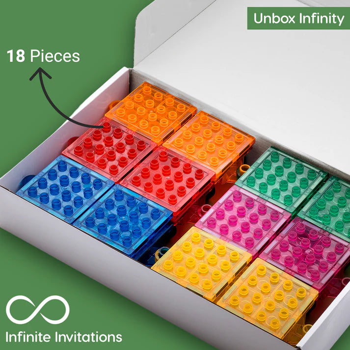 With 6 studded vehicle bases, and 12 matching chunky square tiles, all with large studs, your little creator will be embarking on exciting adventures, fuelled by their imaginations. The possibilities stretch far beyond the train tracks!