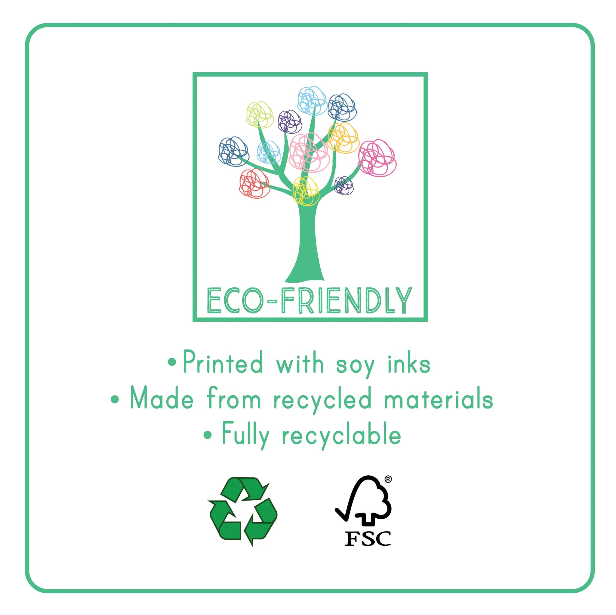 ECO-FRIENDLY BENEFITS: Printed with soy inks Made from recycled materials Fully recyclable