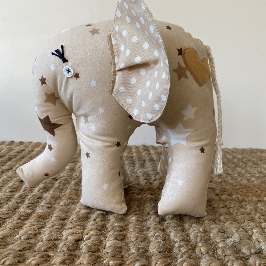Ndlovu Handmade Elephant Soft Toy - Beige with stars - Small or medium