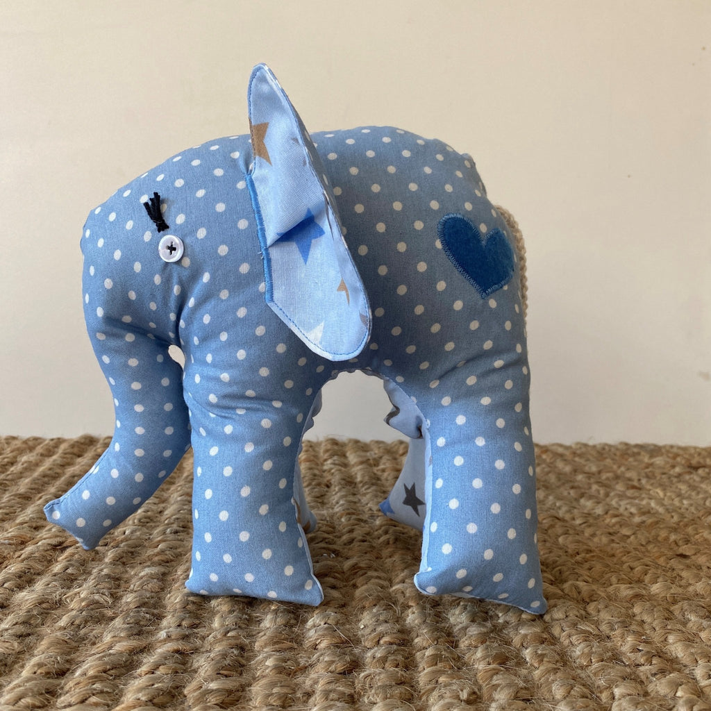 Ndlovu Handmade Elephant Soft Toy - Blue with Stars - Small or medium