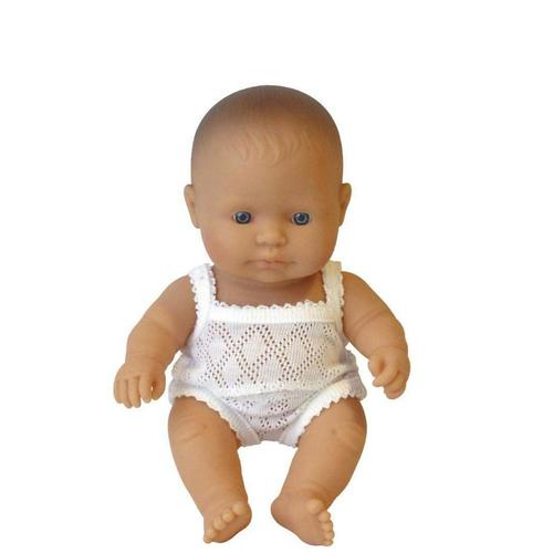 Miniland Dolls become a child's best friend, and they're so gorgeous to style in the nursery or bedroom. The Caucasian baby girl doll comes complete with a sweet little white singlet and matching underpants.