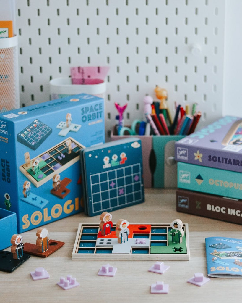 Get ready to embark on an interstellar adventure with Djeco’s Space Orbit game! The mission? Safely secure each astronaut to their space station before they drift off into the infinite expanse of space. With 60 unique challenges spread across four difficulty levels, the goal is to find the single solution that keeps all astronauts anchored safely.