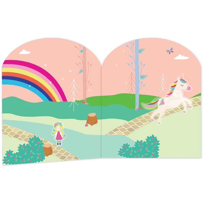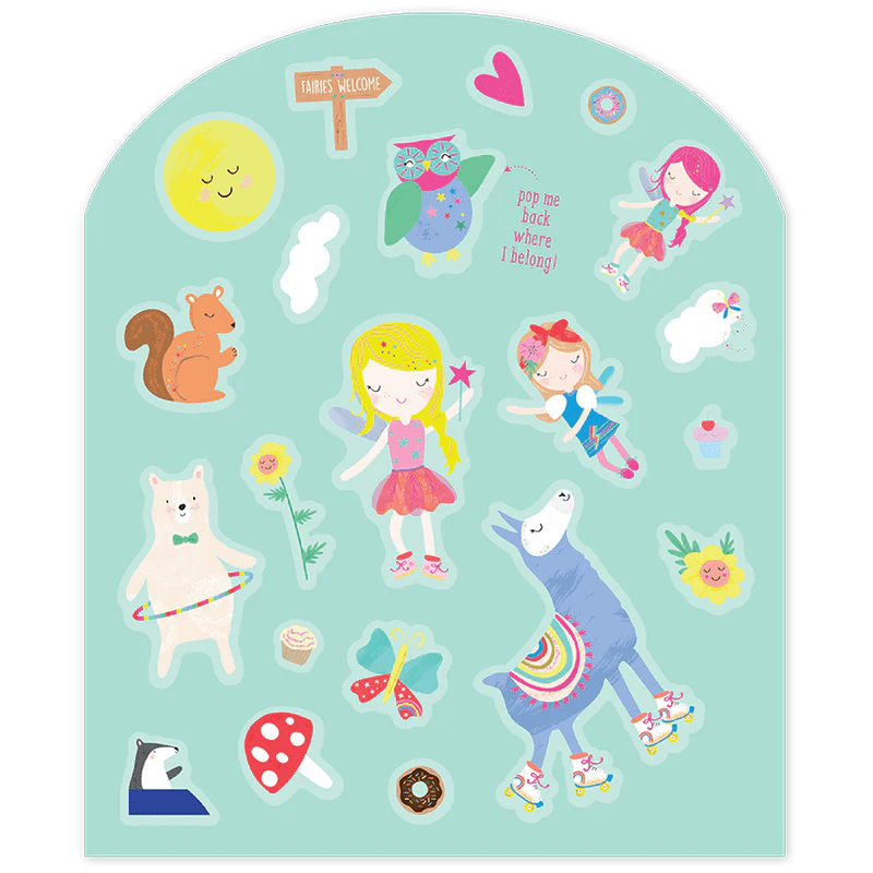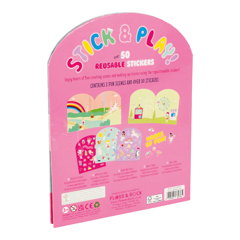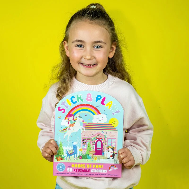 The Floss & Rock Rainbow Fairy Stick & Play book is so much fun and educational at the same time too! With over 50 fun shaped reusable stickers including fairies, unicorns, a hula hooping bear so much more. There are 2 fold out scenes to create and make up stories using the reposition-able stickers. At the back there is a separate section where you match the stickers to their shapes. This will entertain little ones for hours! The hard back book folds completely flat making it perfect for travel and taking out and about.