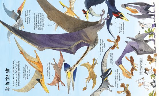 Each page has either two giant folding flaps, to reveal more dinosaurs underneath, or a 4-page concertina-fold pull-out, to reveal the very LONGEST creatures, on land and under the sea.