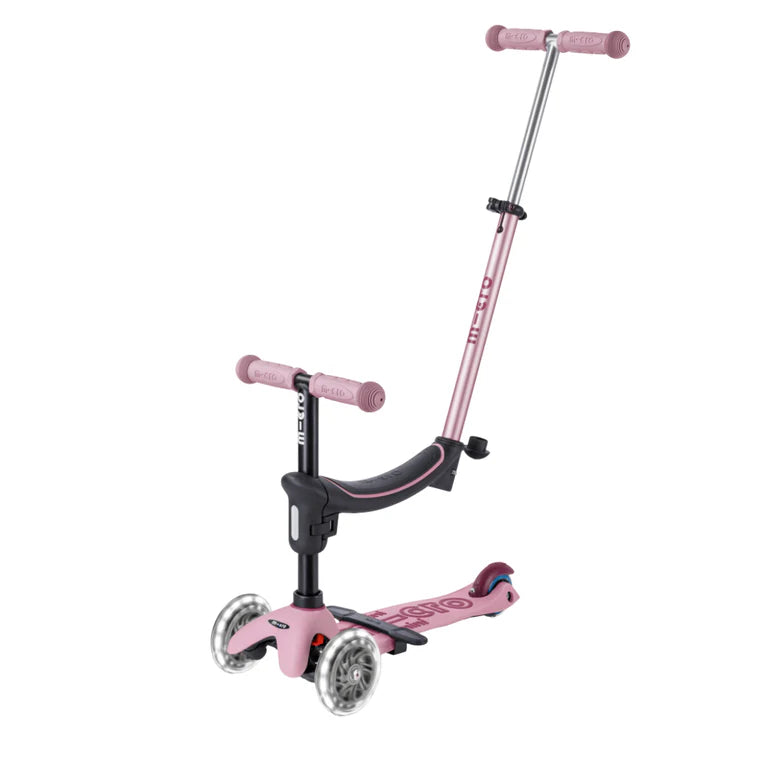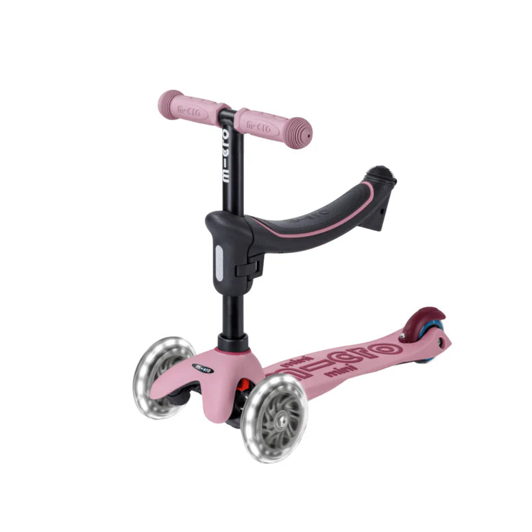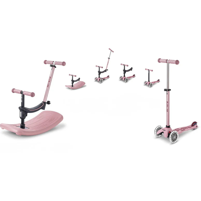 Everything comes in one box – from a gentle rocking toy for indoor play to a parent-assisted ride-on, and finally the classic Mini Micro Deluxe LED kick scooter. With just a few simple steps, all six variations can be assembled. A family-friendly bonus: two product versions can be used simultaneously – one child can rock while the other scoots.