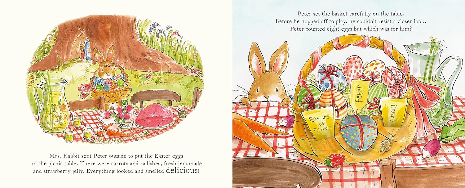 But when Peter knocks over the Easter basket full of eggs, he has to go on a hunt to find them all. Will he make it back in time for the picnic?