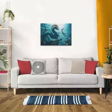 The 1000pc Ravensburger Enchanted Depths puzzle is an enchanting and immersive puzzle that transports you to a whimsical world filled with vibrant colours and an intricate design, where a mermaid reaches towards a majestic dragon against the backdrop of a shipwreck in an underwater scene. Each piece is crafted to perfection, ensuring a snug fit and an enjoyable assembling experience. Ideal for puzzle enthusiasts and fantasy lovers alike, this 1000-piece puzzle offers a captivating challenge that engages the mind and sparks creativity. Whether you're piecing together with family, friends, or indulging in some solo time, this puzzle promises hours of delightful entertainment. Perfect for framing once completed, it serves as a beautiful piece of art that captures the imagination.