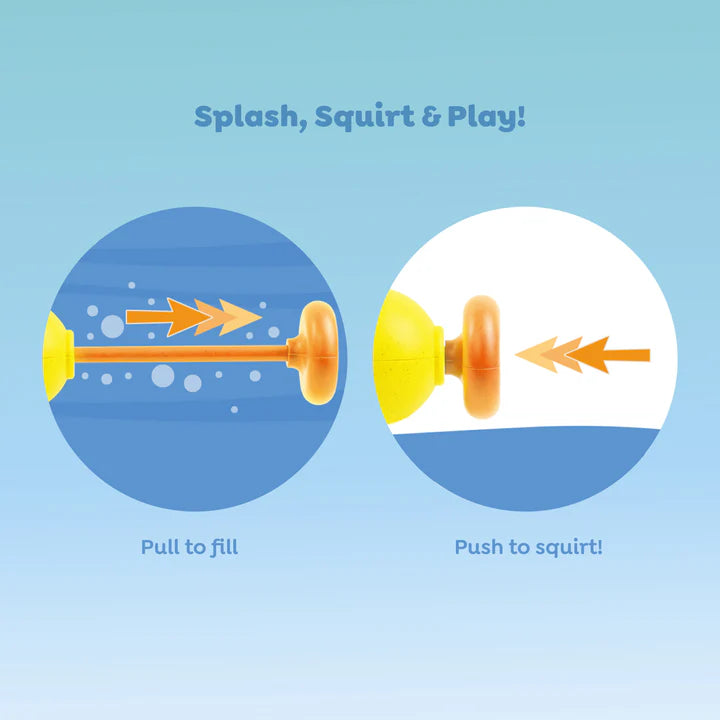 This cute submarine water blaster is perfect for bath time or backyard battles. Pull the handle to draw in water, then push to blast! Designed for little hands and big imaginations, Tub Sub features adorable animal friends in the portholes and a removable periscope for extra fun. Made from safe, BPA-free materials, it offers great range and accuracy—ideal for splashy battles or watery target practice. A great way to make bath time easier (and more fun for the bath averse!).